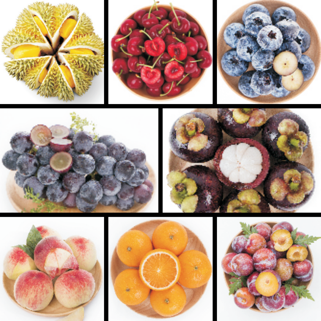榴莲、榴莲冻肉、山竹、龙眼、椰青、车厘子、葡萄、桃李、橙子、蓝莓等进口及国产精品水果。