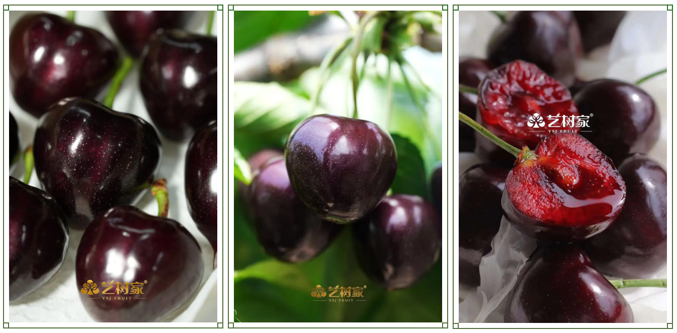 艺树家,是绿海农业潜心三十余年,从种出一棵好树开始的樱桃品牌。得益于得天独厚的气候条件和肥沃的土地,“艺树家”樱桃在充足的光照和适宜的昼夜温差中孕育而生。每一颗樱桃都凝聚了绿海人对品质的极致追求和对自然规律的深刻理解。果实油润黑亮,泛着诱人的色泽;果肉厚实细腻,甜而不腻的黄金甜酸比,多汁且风味独特,令人回味无穷。