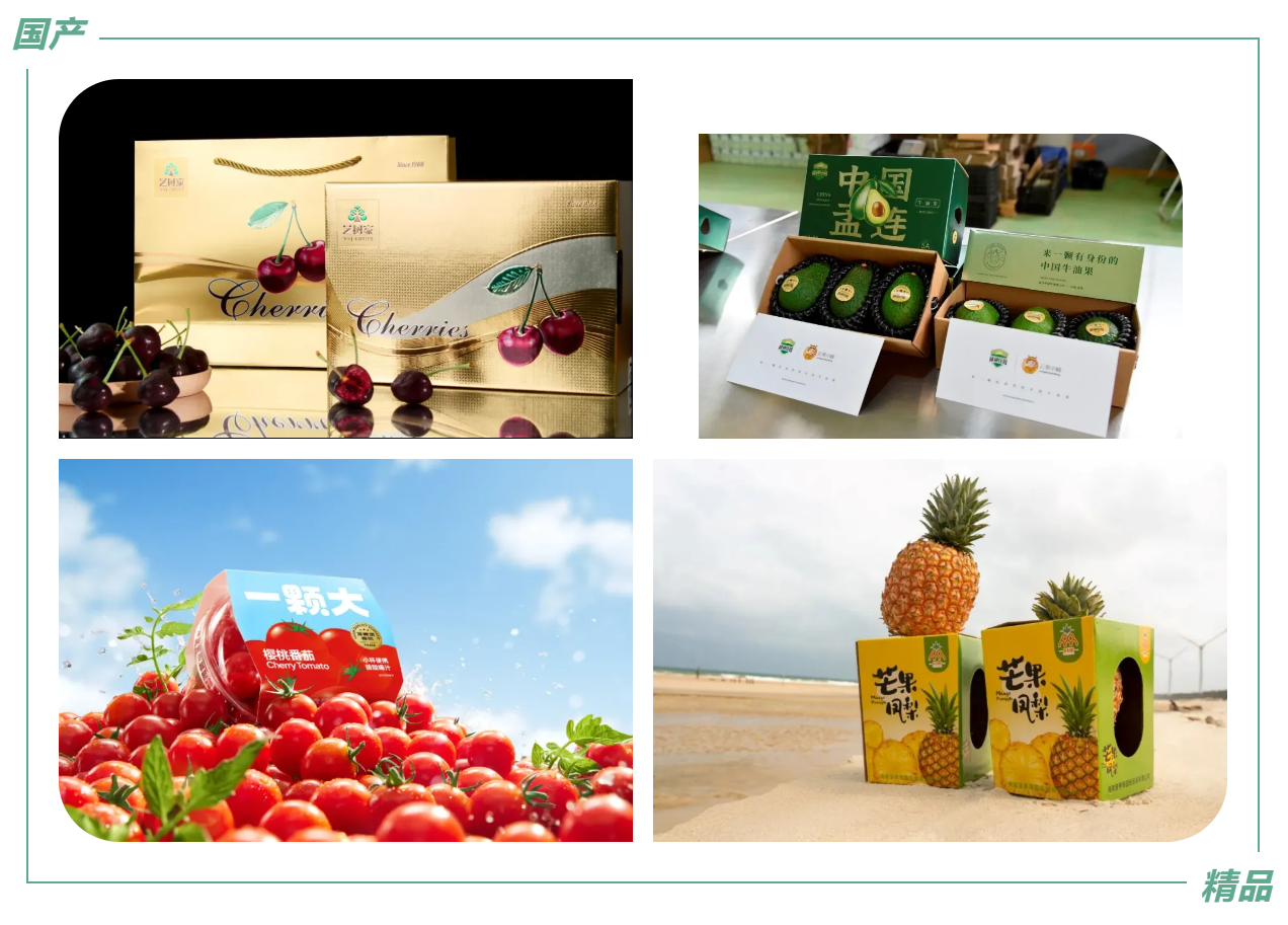 中国东西跨越63个经度,南北横跨52个纬度,拥有几乎全部地形地貌。在中国几代水果人坚韧不拔的努力下,近年来中国本土优秀水果品种和水果企业不断涌现。今年的中国国际水果展(CHINA FRUIT)上就有来自大连的国产樱桃之光-艺树家、中国人自己的明星牛油果-绿银牛油果、高端水果番茄品牌-一颗大™、中国凤梨标准领航者-凤梨哥等一大批迅速成长起来的国产精品。